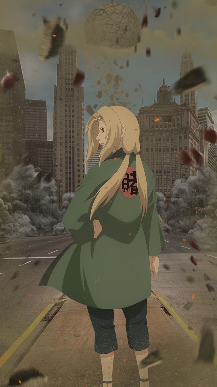 Tsunade Senju é uma dos Sannin Lendários de Konohagakure. Embora seja considerada a kunoichi mais forte do mundo e a maior ninja médica, Tsunade abandonou a vida de shinobi por muitos anos em busca de outros objetivos. Ela acaba sendo convencida a voltar para Konoha e se torna Junnin médica. onde ela usa sua força para reprimir os inimigos da vila e seu conhecimento médico para manter os moradores a salvo. Tsunade é a primeira neta do Primeiro Hokage: Hashirama Senju, e sua esposa Mito Uzumaki, assim como a sobrinha-neta do Segundo Hokage: Tobirama Senju, levando outras pessoas a chamá-la de "Princesa" Hime. Em sua infância, ela foi estragada por Hashirama, que adorava seu primeiro neto, e ainda pegou o hábito para os jogos. Ela, junto com Jiraiya e Orochimaru, também são ex-alunos do Terceiro Hokage. Durante a guerra Shinobi, antes de se encontrarem com os Órfãos de Ame, Tsunade e seus companheiros de equipe lutam contra Hanzō, que lhes dá o título de "Três Shinobi Lendários" de Konoha, os Sannin, como uma recompensa por sobreviverem a sua batalha com ele, enquanto todo o resto do grupo morreram facilmente. Em seu próprio mérito, Tsunade se torna famosa por frequentemente contrariar todos os venenos de Chiyo, ganhando o desprezo da kunoichi de Sunakagure com relação a ela. Além disso, segundo Jiraiya, as habilidades incomparáveis de Tsunade como uma combatente e uma médica foram a razão de Konoha ganhar a guerra. No entanto, Tsunade sofreu perdas dolorosas antes do fim da Segunda guerra Mundial Shinobi. Os trágicos acontecimentos começam quando seu irmão mais novo Nawaki é morto em ação no dia seguinte ao seu décimo segundo aniversário, após receber o colar de cristal de seu avô, que ela dá a ele na esperança de que ele iria ajudá-lo a realizar seu sonho de se tornar Hokage. Este evento acabou fazendo Tsunade defender a ideia de incluir ninjas médicos nas equipes que estão no campo de batalha, Hiruzen, porém, informa que devido ao conflito, treinar e utilizar esse recurso é impossível no momento. Com o tempo, se encontrando e compartilhando ideias semelhantes com Dan, Tsunade acaba se apaixonando por ele. Como sinal de sua afeição, e na esperança de que desta vez ele iria ajudar a tornar seus sonhos realidade, Tsunade lhe dá o colar de Hashirama, porém, Dan também acaba morrendo e o colar volta para sua posse, a partir de então surgiram rumores de que o item é amaldiçoado e que qualquer um que usá-lo, fora Tsunade, irá morrer. Desenvolvendo hematofobia, Tsunade passou a ser incapaz de tomar parte em qualquer batalha, as mortes de ambos Nawaki e Dan desiludiram Tsunade para ver o título de Hokage como nada mais do que a posição de um tolo. Com essas mudanças de ideais, Tsunade deixou Konoha com a sobrinha de Dan, Shizune, levando-a como sua aprendiz, que se tornou uma das poucas pessoas que Tsunade verdadeiramente confia. Tsunade também chegou a possuir um porco de estimação, Tonton que ela deixa na maior parte aos cuidados de Shizune